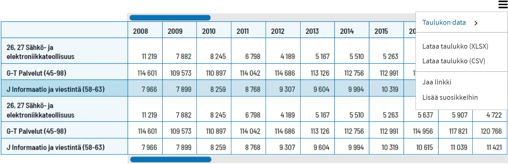 Etsitkö aiemmin julkaistua tilastotietoa?